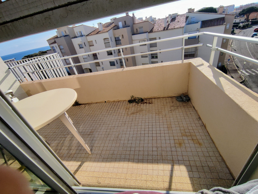LE CAP D'AGDE: LES FALAISES ( vue mer et zone technique )Exposé SUD ! Dernier étage vue dégagée avec ascenseur, STUDIO 16,98m² hab.) + TERRASSE 4,98m², comprenant : Entrée, salle de bains avec wc, séjour + coin cuisine, vendu meublé. (Ravalement des façades fait en 2023). Vendu meublé... (Prix honoraires inclus charge vendeur). Plan de sauvegarde copropriété : Néant /Appartement actuellement loué rentabilité locative en cours... . 450/mois CC.( Bail 1 an meublé renouvelable )