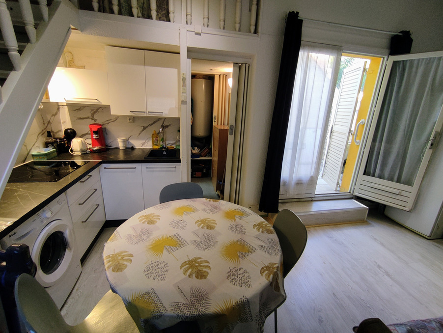 Le Cap d'Agde, secteur PINEDE au calme, dans résidence sécurisée au 1er et dernier étage, Appartement Studio/mezzanine comprenant : entrée par escalier privatif, terrasse, séjour avec cuisine équipée neuve, dégagement placard, salle d'eau avec wc. ETAGE : Mezzanine basse (5,83m2 au sol) avec fenestron (lit double). PARKING PRIVATIF. Vendu meublé, clim réversible, sol parquet. DPE : E/315 et B/9. électricité refait.Les informations sur les risques auxquels ce bien est exposé sont disponibles sur le site Géorisques : www.georisques.gouv.fr