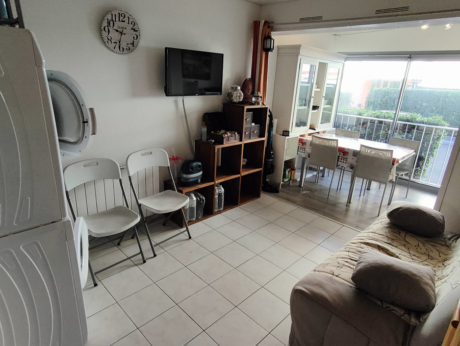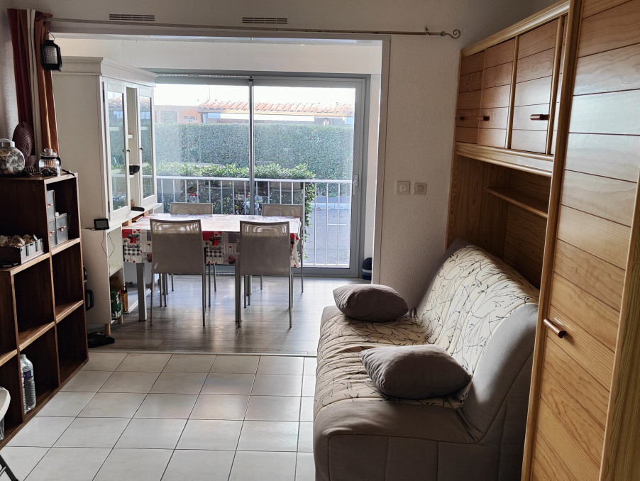 LE CAP D'AGDE: Appartement situé proche plage de la Grande Conque: REZ DE CHAUSSEE: Comprenant: Entrée cabine ( 2 lits superposés), S/eau avec wc, coin cuisine équipé, séjour, loggia vitrée ( double vitrage neuf + volet électrique ). Vendu meublé et équipé, habitable sans travaux! ( Faible charges de copropriété ) nombreux parkings gratuits à proximité.Les informations sur les risques auxquels ce bien est exposé sont disponibles sur le site Géorisques : www.georisques.gouv.fr
