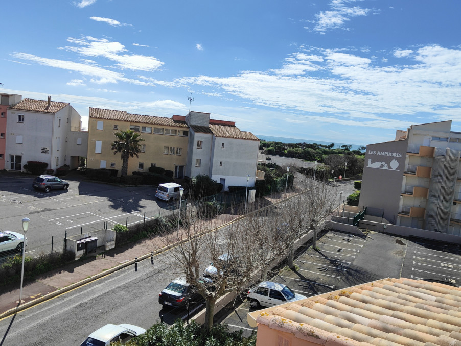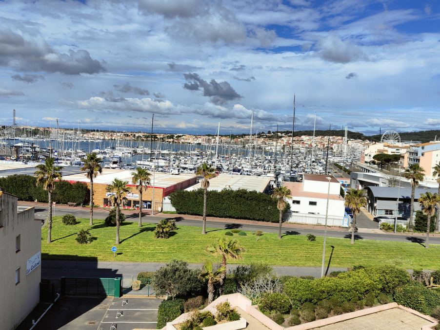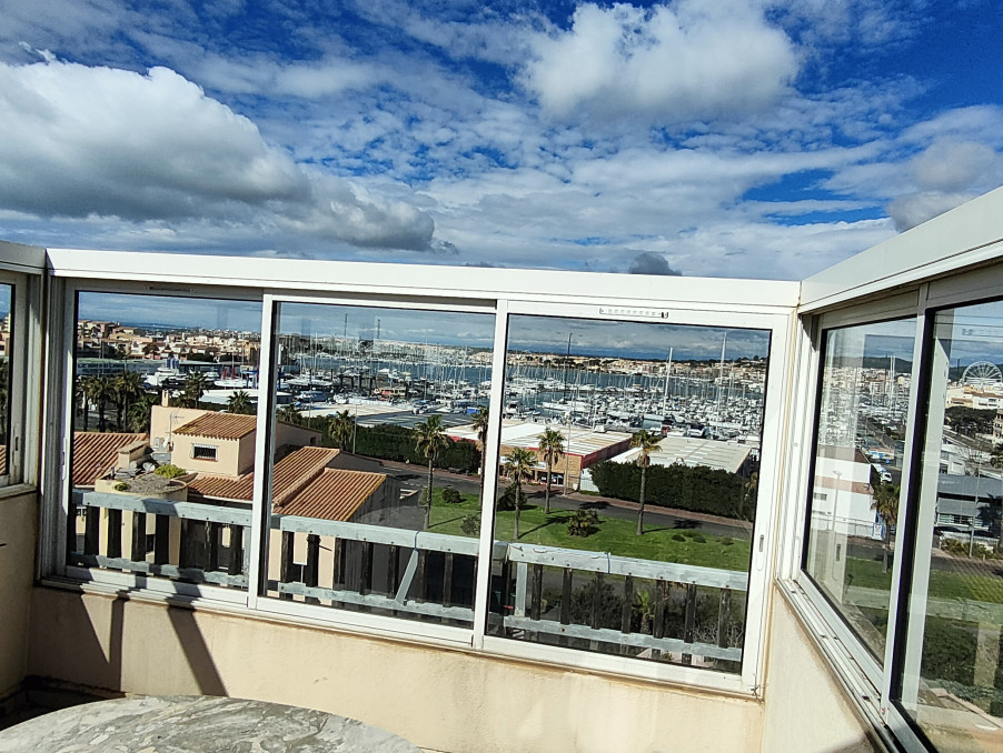 LE CAP D'AGDE: Secteur des falaises: Dernier étage / Ascenseur...VUE PANORAMIQUE AVEC SOLARIUM ( Vue mer et port ). Appartement 2 pièces principales cuisine équipée, wc, S/eau, séjour / loggia Ouest. SOLARIUM 11.87m² 3 faces avec vue magnifique!! Résidence situé à proximité des falaises de la plage de la Grande conque et du port à pied...( Poss ACHAT GARAGE COUVERT en sus du prix)Les informations sur les risques auxquels ce bien est exposé sont disponibles sur le site Géorisques : www.georisques.gouv.fr