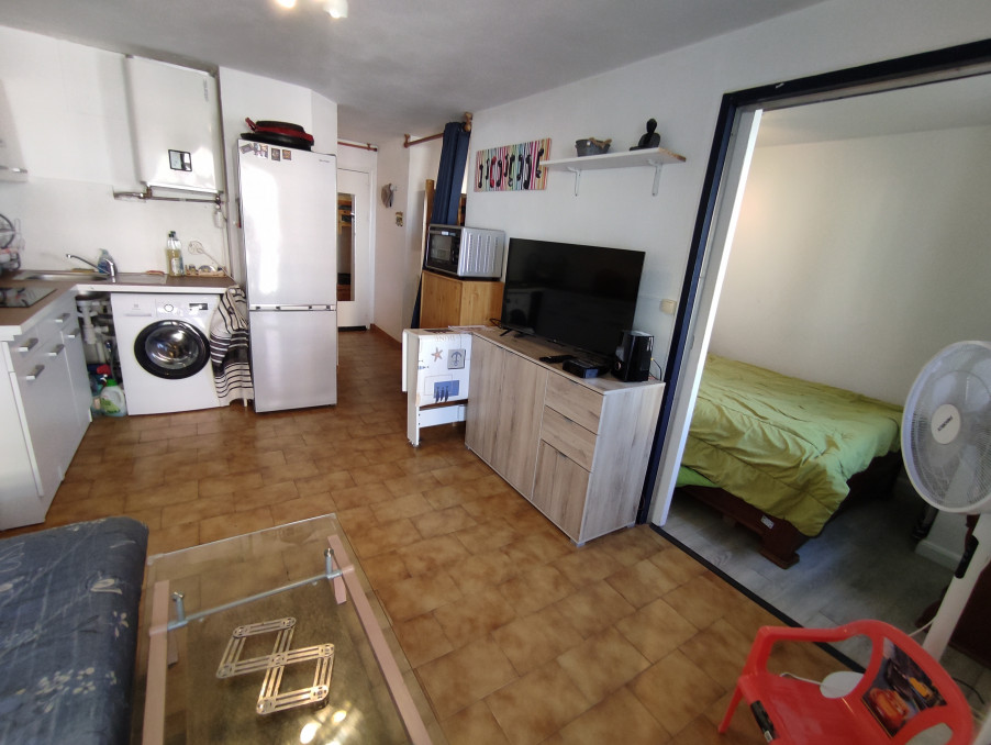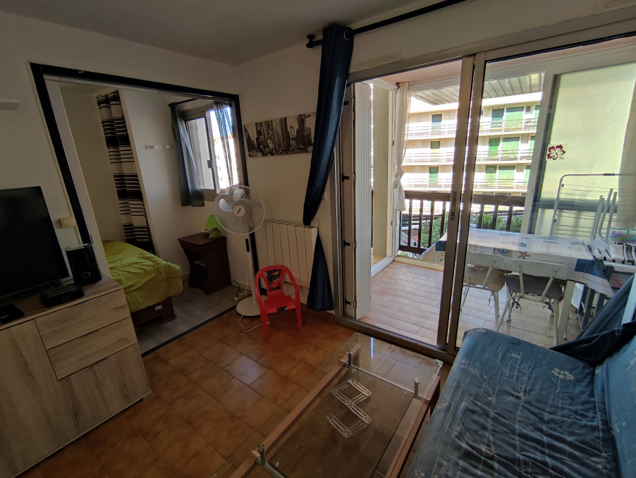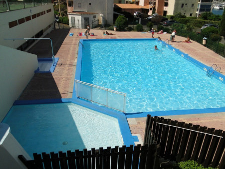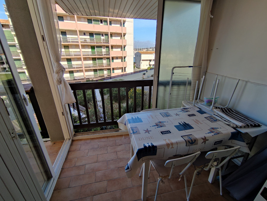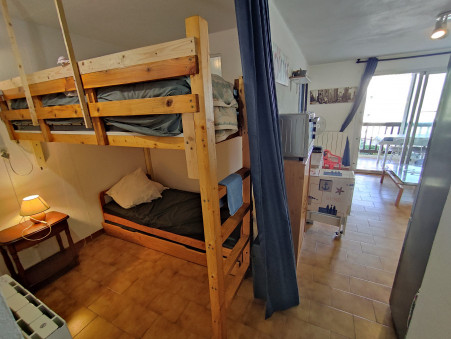 LE CAP D'AGDE: Île des pêcheurs: Résidence avec ascenseur, Piscine et Tennis, appartement T2/cabine 6 couchages, avec loggia vitrée + terrasse ouverte, comprenant: Entrée, 1 espace cabine avec 2 lits superposés (possibilité de mettre un lit de 140cm.+ placard). Wc, Salle d'eau, séjour, coin cuisine équipé, 1 chambre, Exposition Ouest. 300m à pied de la plage de la grande conque et de la plagette. Commerces au pied de la résidence.