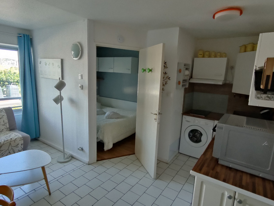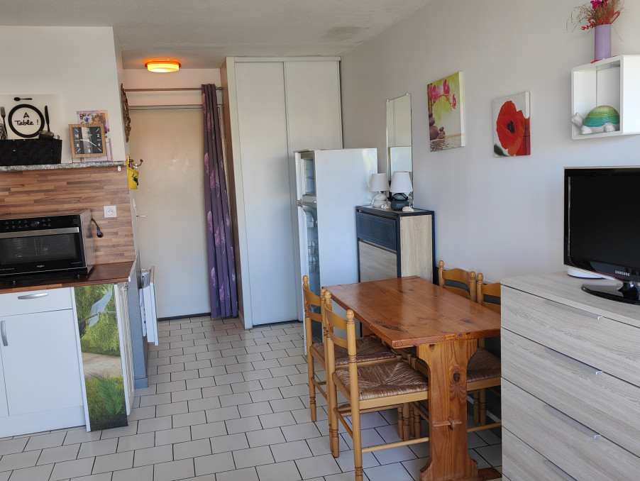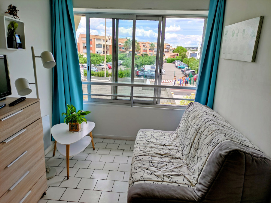LE CAP D'AGDE: A Proximité plage de la Grande Conque et de la Plagette (Falaises/Avant port), appartement T2/loggia + PARKING SÉCURISE. 1er étage. Composé d'une entrée avec placard, wc séparé, salle d'eau, salon, cuisine équipée avec lave linge/hotte aspirante, loggia vitrée 3 vantaux + volet roulant électrique, 1 chambre avec placard. Vendu meublé. fibre dans l'appartement. Tableau Edf refait. pas de vis a vis. Très bon état général.Les informations sur les risques auxquels ce bien est exposé sont disponibles sur le site Géorisques : www.georisques.gouv.fr
