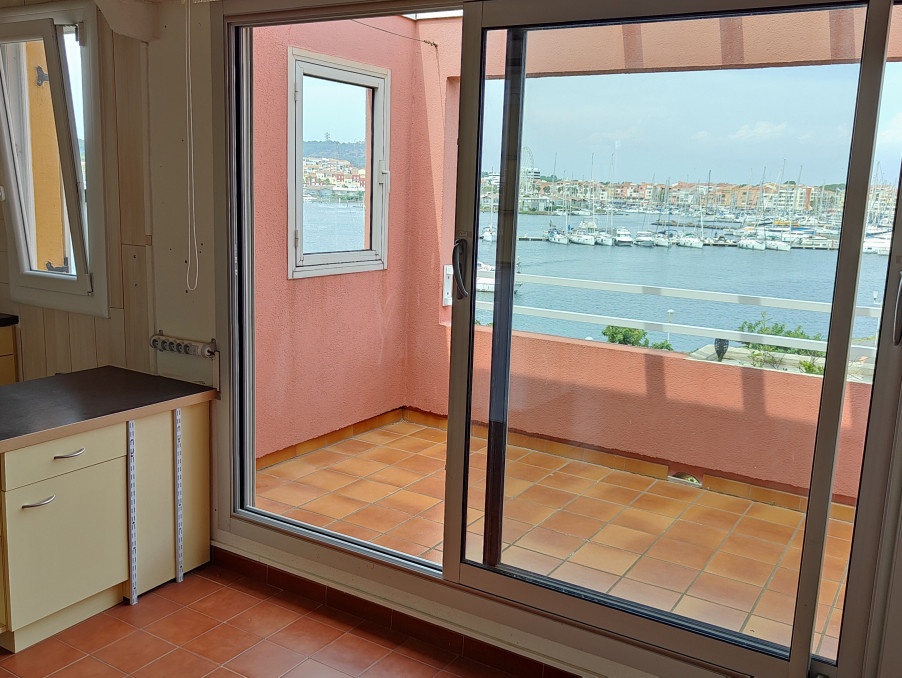 LE CAP D'AGDE: Île des pêcheurs: Appartement T3/mezzanine situé au 3ème et dernier étage (avec ascenseur), Comprenant: Entrée, 2 chambres dont une avec mezzanine, S/bns, wc, cuisine équipée + salon avec mezzanine. TERRASSE avec magnifique vue panoramique vers le port!. Parking privé sécurisé. Résidence ravalée récemment. Climatisation réversible.Les informations sur les risques auxquels ce bien est exposé sont disponibles sur le site Géorisques : www.georisques.gouv.fr