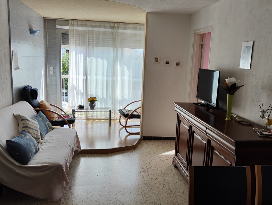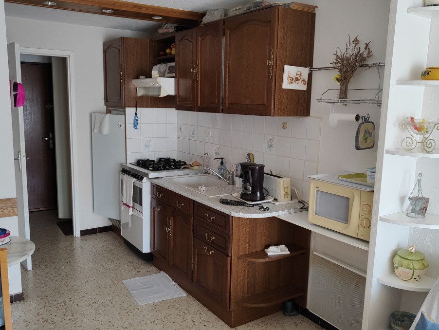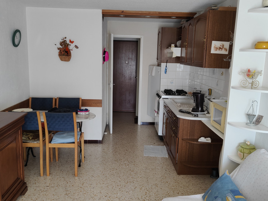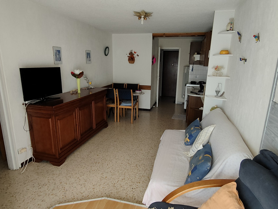 LE CAP D'AGDE: Situé secteur Môle 200m de la plage, appartement 2 pièces /loggia vitrée et parking sécurisé. 1er étage; Comprenant: Entrée, S/eau avec wc, coin cuisine donnant sur salon, 1 chambre, loggia récupérée vitrée avec volet roulant. 1 parking privé. ( 1/2 meublé ). Proximité des commerces de la Flânerie.Les informations sur les risques auxquels ce bien est exposé sont disponibles sur le site Géorisques : www.georisques.gouv.fr