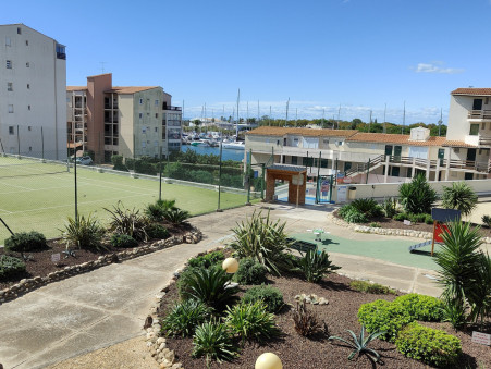 LE CAP D'AGDE: Ile des pêcheurs: Résidence sécurisée avec PISCINE TENNIS + ASCENSEUR: Appartement STUDIO-CABINE avec loggia vitrée ( Total = 26.7m² ), exposition Ouest. . Comprenant: Entrée cabine (2 lits superposés), S/eau avec wc, coin cuisine donnant sur séjour, Loggia vitrée avec vue sur le jardin de la résidence. Vendu meublé. Résidence située à 250m des plages ( Conque et Plagette ). Commerces au pied de la résidence.Les informations sur les risques auxquels ce bien est exposé sont disponibles sur le site Géorisques : www.georisques.gouv.fr