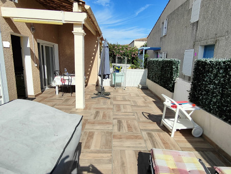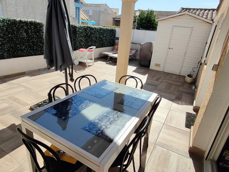 LE CAP D'AGDE: Situé à Rochelongue: Villa de 39m², type: T2 + mezzanine haute avec terrasse de 38m², comprenant: Séjour, coin cuisine équipée, 1 chambre en bas, wc, S/eau, 1 mezzanine haute = chambre avec fenêtre. Parking privatif, PISCINE dans la résidence. Vendu meublé et équipé. Abris de jardin sur la terrasse exposée SUD. Résidence sécurisée située à proximité d'une belle plage de sable et des commerces du Mail de Rochelongue.Les informations sur les risques auxquels ce bien est exposé sont disponibles sur le site Géorisques : www.georisques.gouv.fr