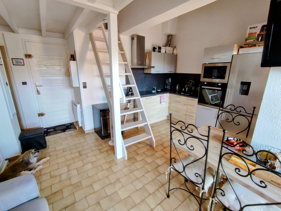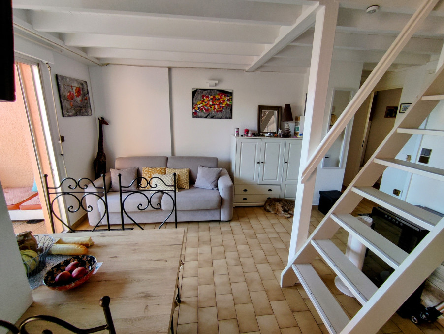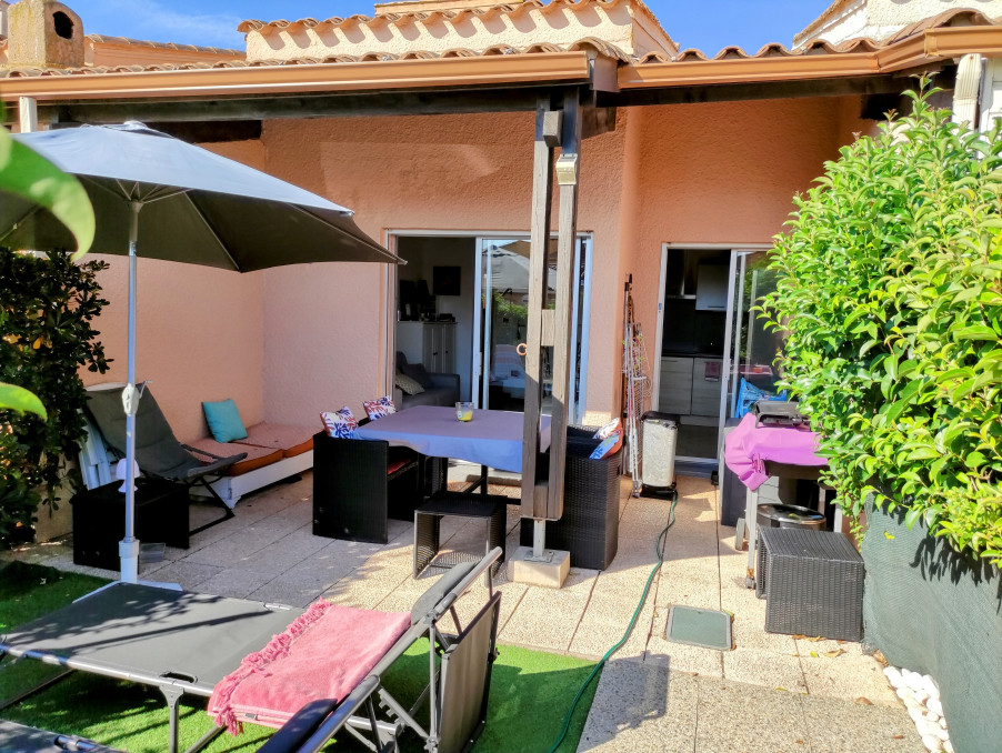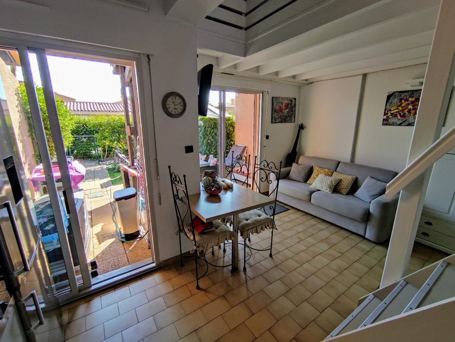 Le CAP D'AGDE, secteur CLAPE, ( prox. plage de la Roquille et Centre Port ) villa mitoyenne duplex en résidence comprenant : Entrée, placard, wc avec fenêtre, salle de bains avec fenêtre, séjour et cuisine américaine équipée, ETAGE : 1 chambre avec 2 fenêtres. Jardin/Terrasse avec portillon dont une partie couverte. parking privatif à proximité. Villa vendue meublée, calme et sécurisée. Loi Carrez 29,32m² + mezzanine surface total 36,19m².Les informations sur les risques auxquels ce bien est exposé sont disponibles sur le site Géorisques : www.georisques.gouv.fr