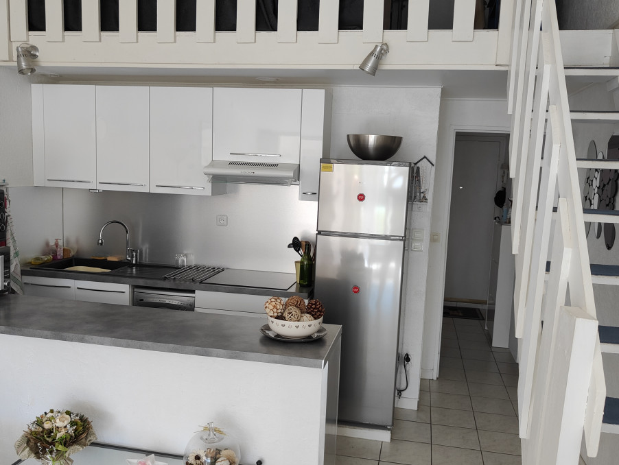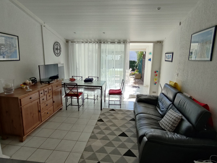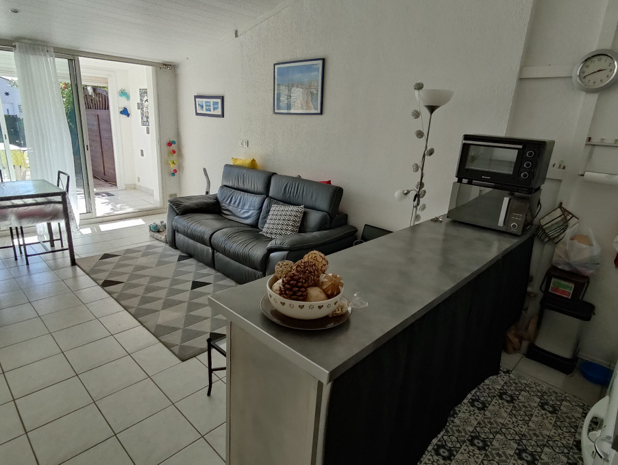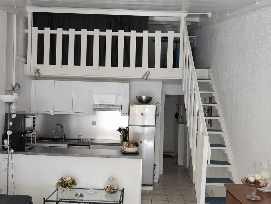 LE CAP D'AGDE: Secteur pinède/Tennis, villa 2 pièces plus mezzanine avec loggia vitrée ( 45 m² au sol). Jardin clos et terrasse. Parking privatif. Comprenant : une chambre au rez-de-chaussée, wc, salle d'eau, coin cuisine équipée sur séjour. Mezzanine (10.81 m² au sol avec fenêtre) . Loggia Vitrée donnant sur jardin ( 5.06m²). Vendu meublé. Plafonds isolés.. tableau électrique refait. Ballon d'eau chaude électrique. Toiture refaite. Abri de jardin.. ( Faibles charges de copropriété ).Les informations sur les risques auxquels ce bien est exposé sont disponibles sur le site Géorisques : www.georisques.gouv.fr